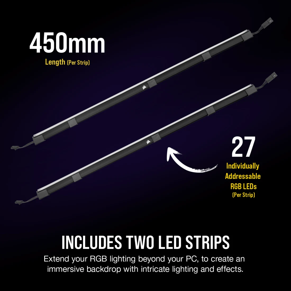 Individually Addressable RGB: 27 LEDs per strip allow for custom lighting effects and gradients.