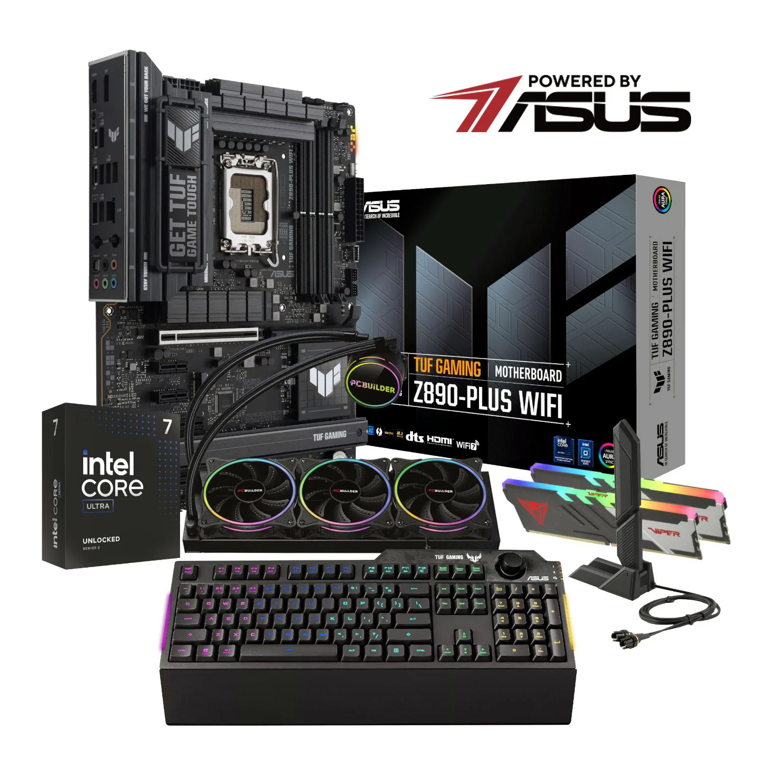 Breathe new life into your desktop PC with the PCBuilder Intel Core Ultra 7 265K LEVEL UP Core Upgrade Kit. This upgrade kit is designed for desktop PCs and is powered by an Intel Core Ultra 7 265K CPU. It also comes with an Asus Z890 chipset motherboard, 32GB of high-speed DDR5 memory, a PCBuilder Hydro Chill 360MM AIO Liquid CPU Cooler, as well as an Asus TUF Gaming K1 RGB Keyboard.